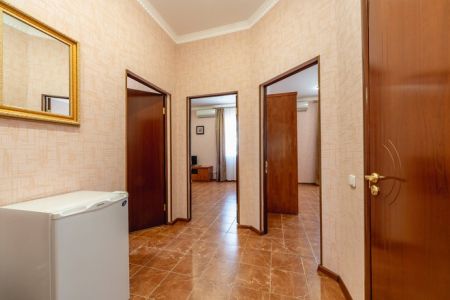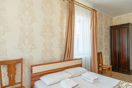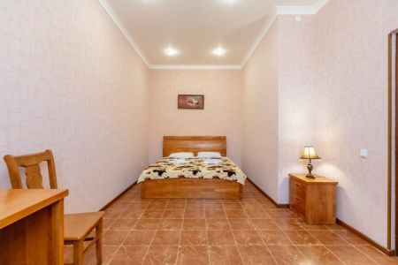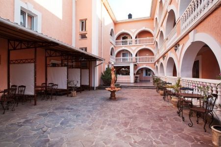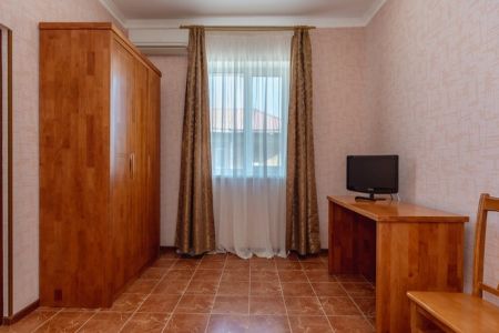 Междугородним автобусом до автовокзала г. Евпатория, далее автобусом до поселка Мирный, далее только такси.