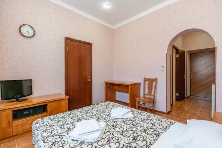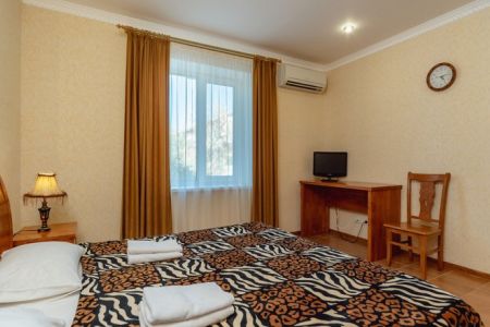 На личном автомобиле через Крымский мост, далее в направлении г. Евпатория, п. Мирный